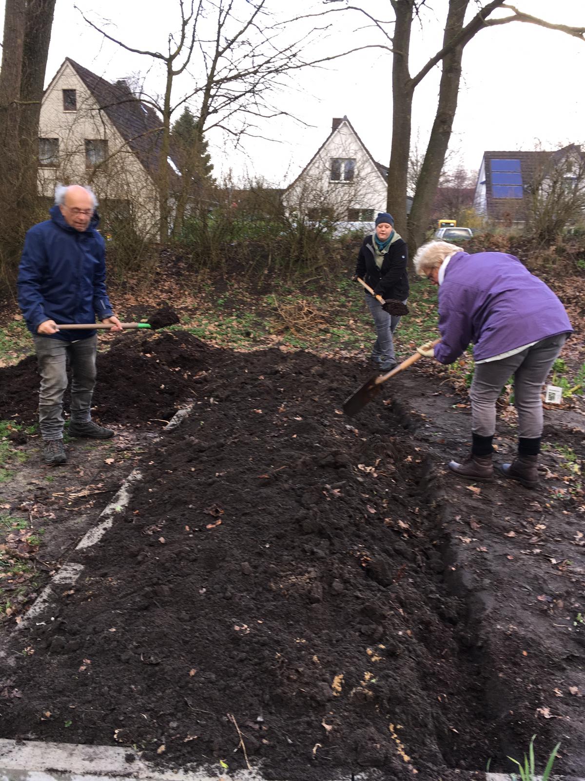 Mit dem Vorbereiten der 70 qm für die nächste Saison wollen wir am kommenden Montag weitermachen. Es wird in den nächsten Monaten aber auch andere Treffen (z.B. dienstags) geben.